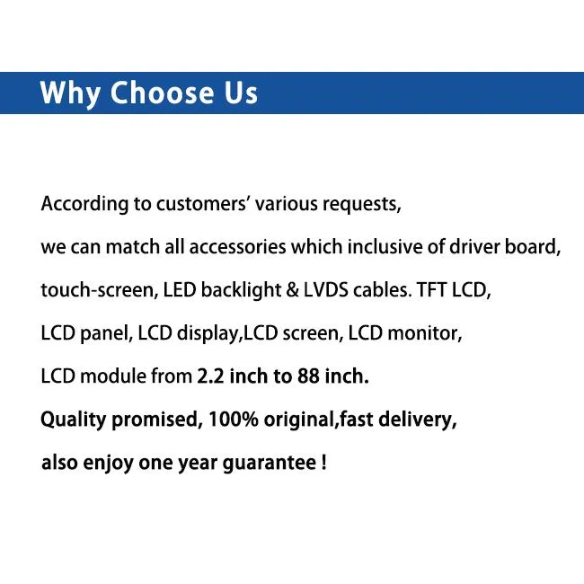 Wir sind einer der professionellen und erfahrenen Anbieter von B156XTN08.0 LCD-Ersatz-Laptop-Bildschirm 15,6 Zoll 40 Pin und bieten Ihnen das Angebot und die Preislistenberatung. Willkommen im Großhandel mit den High-End-, Qualitäts- und Niedrigpreisprodukten, die bei uns auf Lager sind. Guter After-Sales-Service und schnelle Lieferung sind verfügbar.